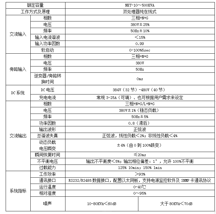 NET-10~500KVA系列技術(shù)參數(shù)表