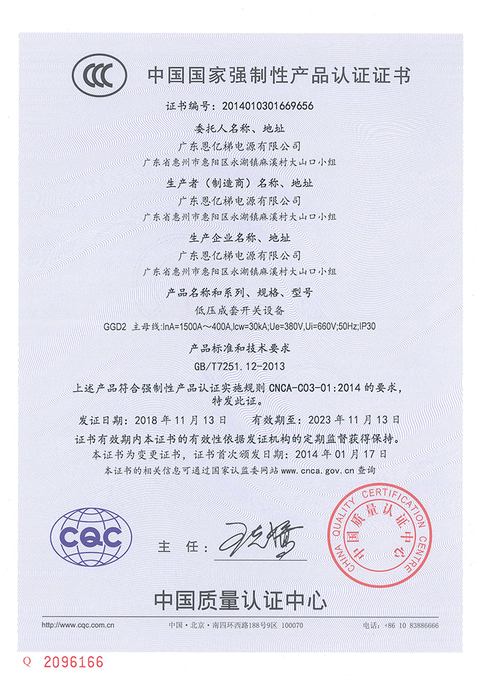 中國國家強制性產(chǎn)品認證(低壓成套開關(guān)設(shè)備)