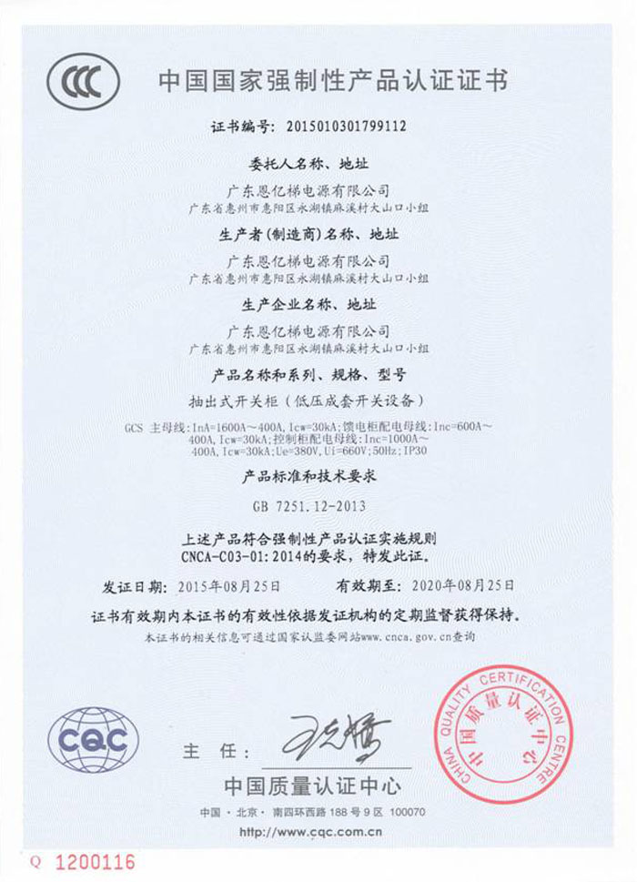 中國國家強制性產品認證(抽出式開關柜)
